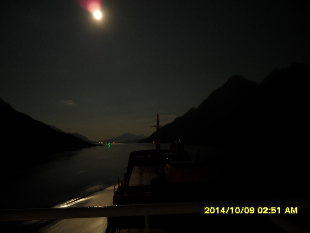 02:00 Kommer på vakt i Sortlandssundet och vi går ner genom Raftsundet igen.