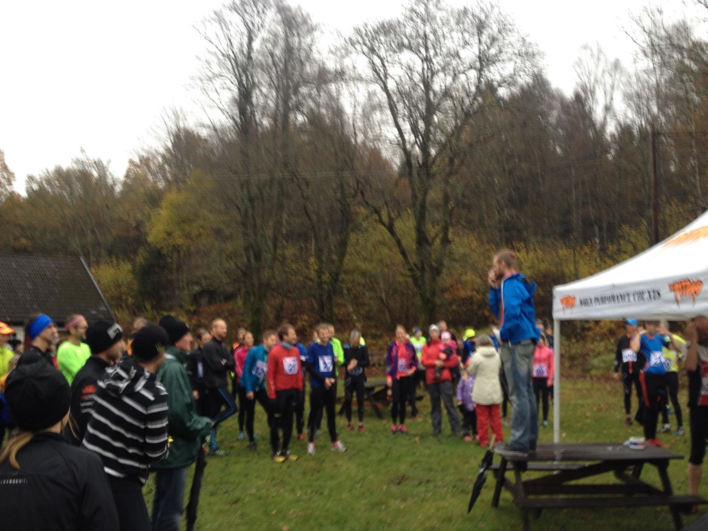 När det närmade sig start så hade det slutat regna och vi stod utanför och lyssnade på vad tävlingsledningen hade att säga.