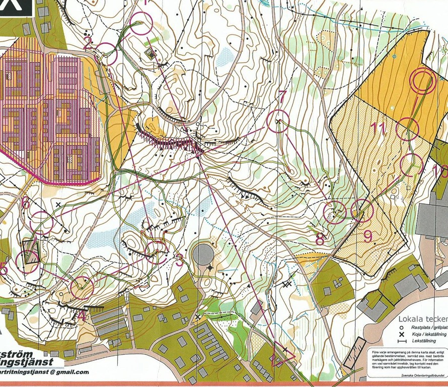 Sprang på nordväst för att komma till slingan. Kom ut strax innan det öppna fältet och sprang över det och uppför slingan och sedan första in till vänster. Rundade höjden och in mot 1:an.