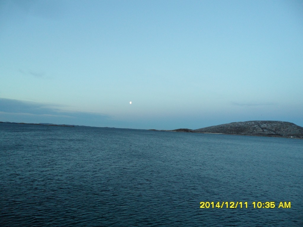 20:00 Kommer på vakt och vi är snart ute på Vestfjorden. Vi kör med reducerad fart för att komma fram till Kobbvågen vid 7 tiden i morgon.