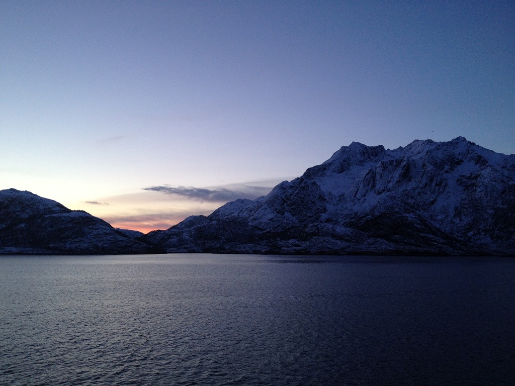 12:35 Färdig lastade och avgår mot Tromsö. Bestämmer att vi kan gå med lite reducerad fart så att vi är framme efter frukost i morgon.