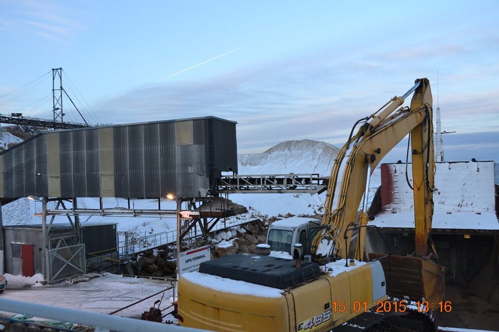 12:25 Förtöjda på Mårnes, men det är gränsfall om det går att lasta. Men vi påbörjar lastningen och hoppas det blir bättre när tidvattnet är på väg in.
