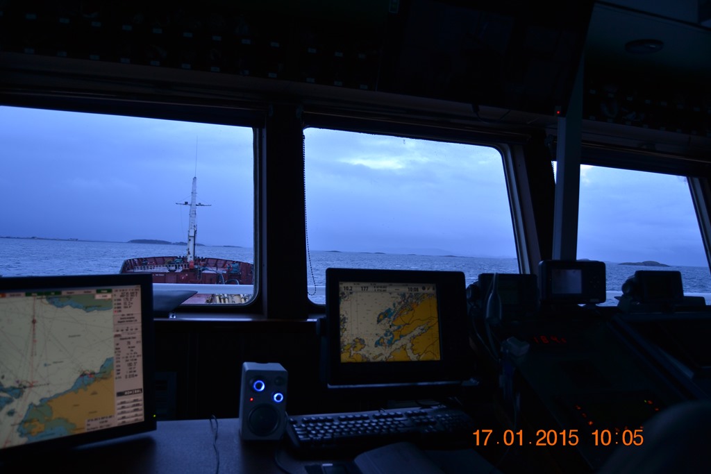20:00 Kommer på vakt när vi kommit över Hustadvika. Strax efter så får jag höra ett Mayday på radion. Det är en fiskebåt som gått på grund ute på Hustadvika och håller på att sjunka.