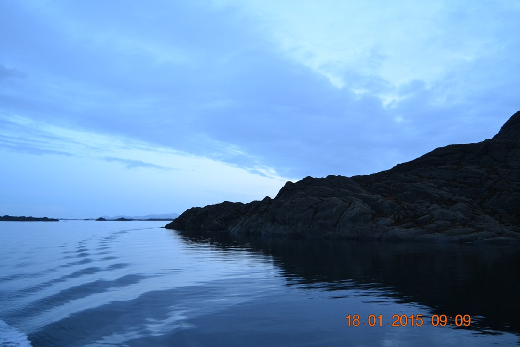 02:00 Går av vakten när vi rundar Stadt, bara lite svag dyning från nord.