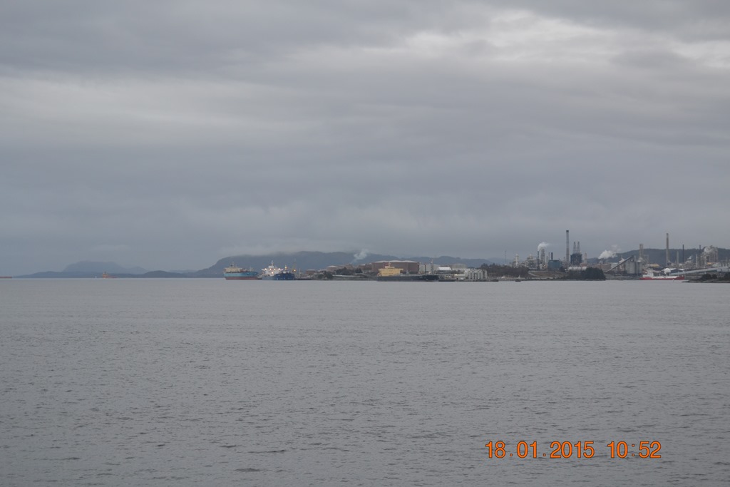 Fortsätter söderut genom Steinssundet och ner mot Slövåg. Passerar Mongstad som är fullt med tankbåtar idag.![]()