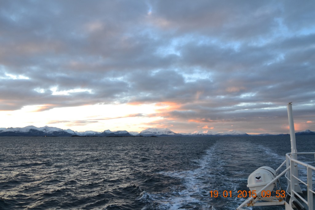08:00 Kommer på vakt innan Lepsöyrevet. Fortsätter ut genom Saltsteinsleia och ut över Hustadvika.