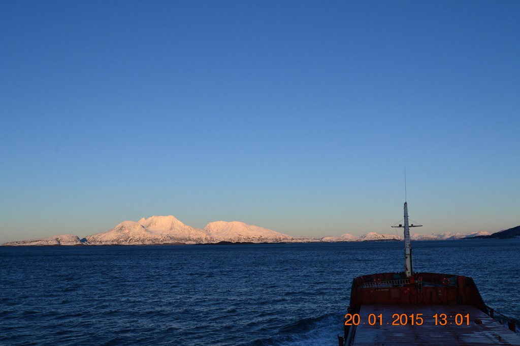 14:00 Går av vakten när vi passerat Sandnessjöen. Äter lite kokt Uer innan jag lägger mig en stund.