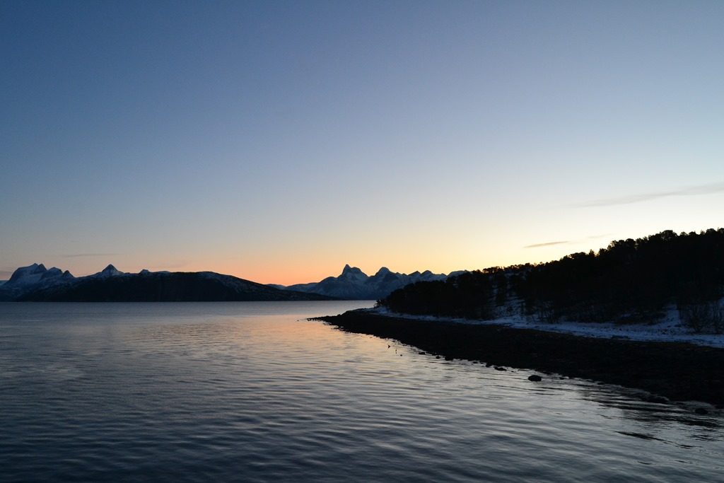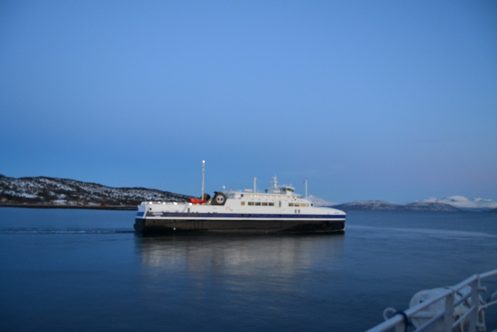06:30 Vaknar och går upp för att ta båten till kaj på Bognes.