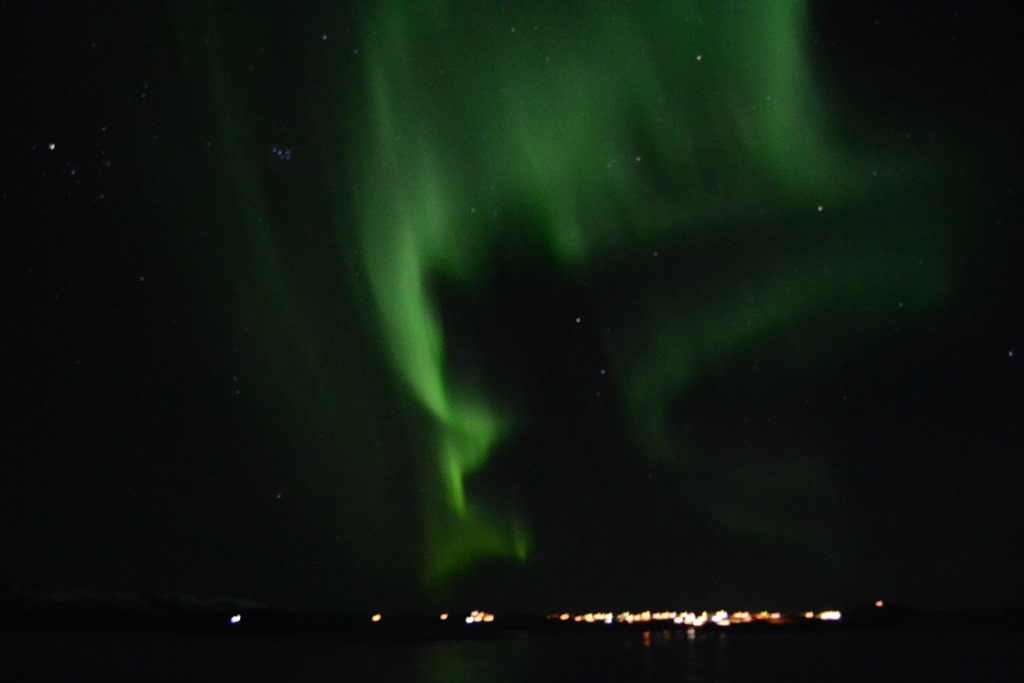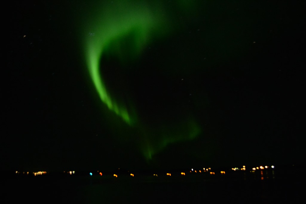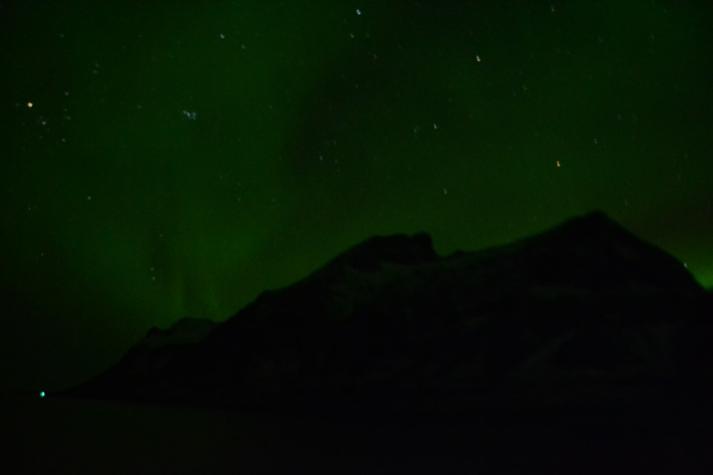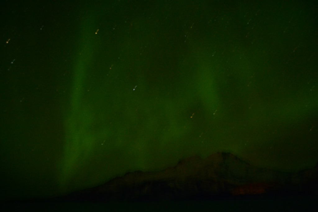 20:00 Kommer på vakt när vi lämnar Vestfjorden och börjar gå söderut. Börjar blåsa lite nu 10-12 m/s sydostligt och –4 grader. Men vilket härligt norrsken det var…