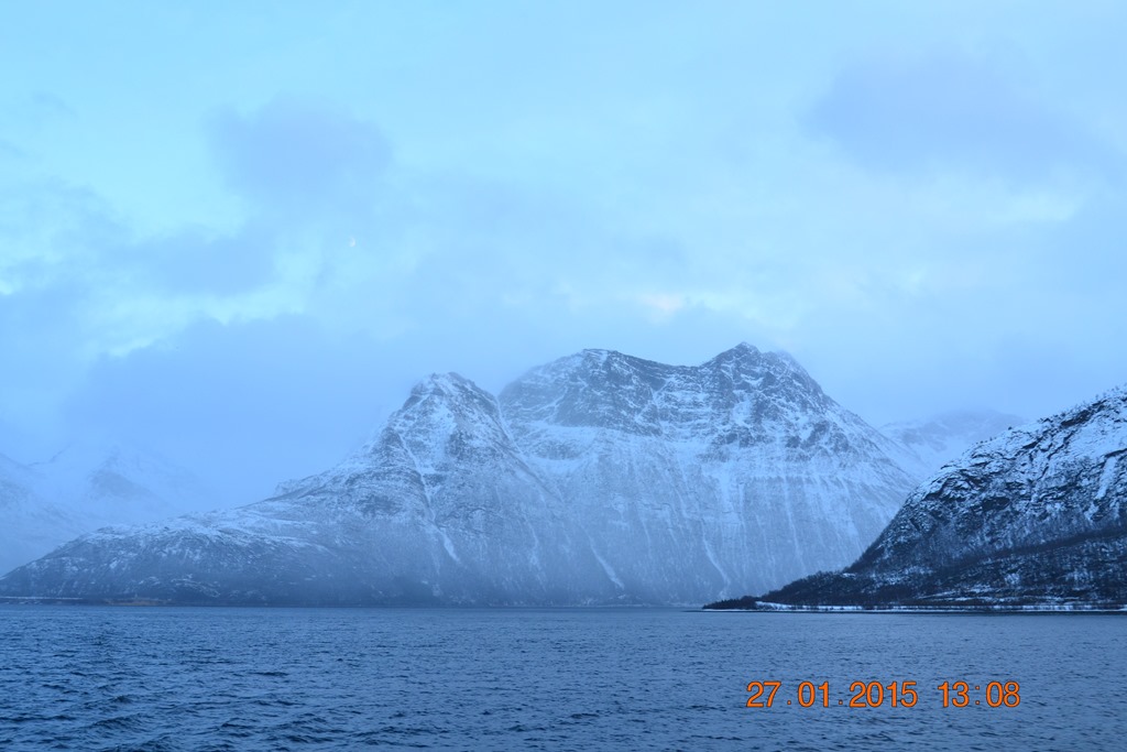 06:40 Förtöjda på Innhavet i kraftigt snöfall och sydvästlig vind 8-12 m/s +1 grad. Jag går ner och äter lite våfflor till frukost.