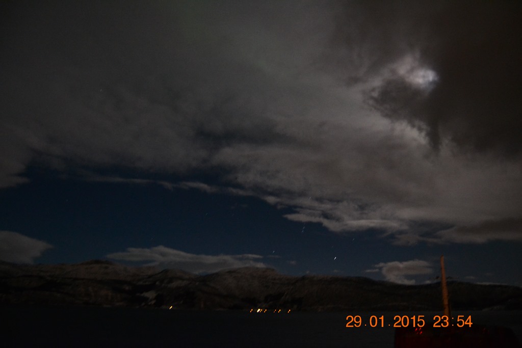 23:30 Färdig lossade och avgår. Vi kör långsamt för att passa tidvattnet i Saltstraumen .![]()