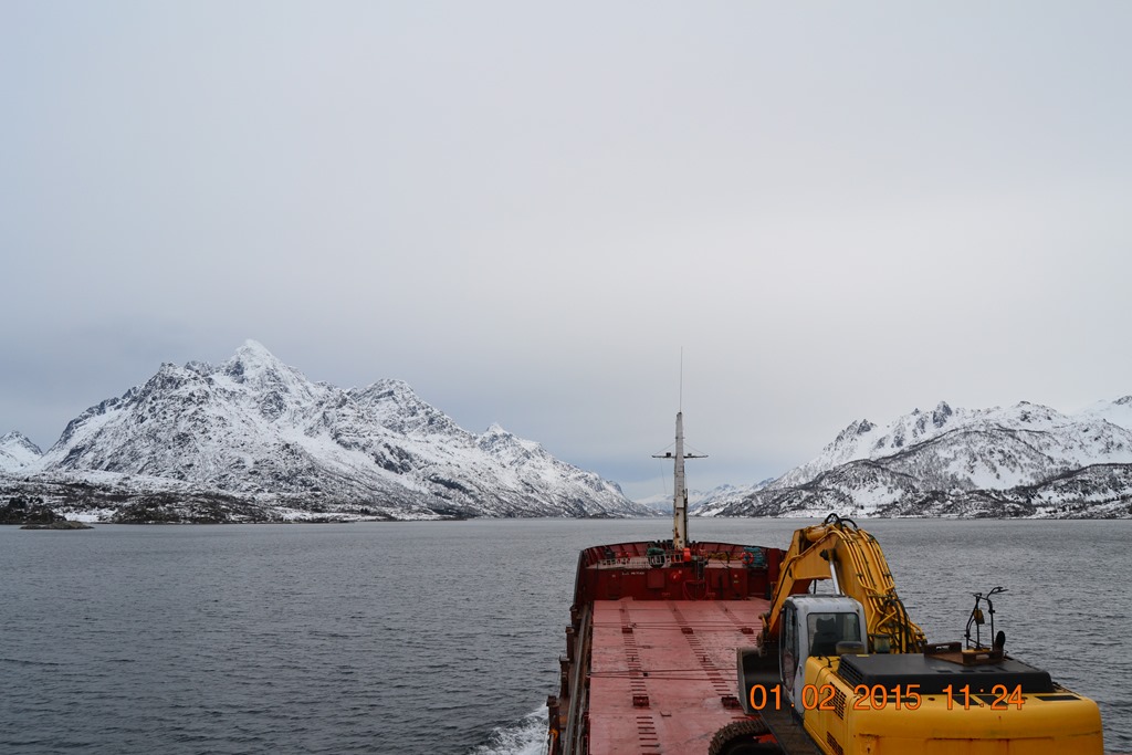 Kommer över Vestfjorden och går upp genom Raftsundet.![]()