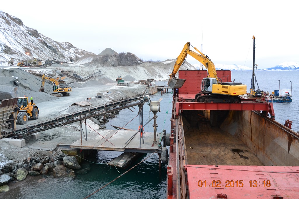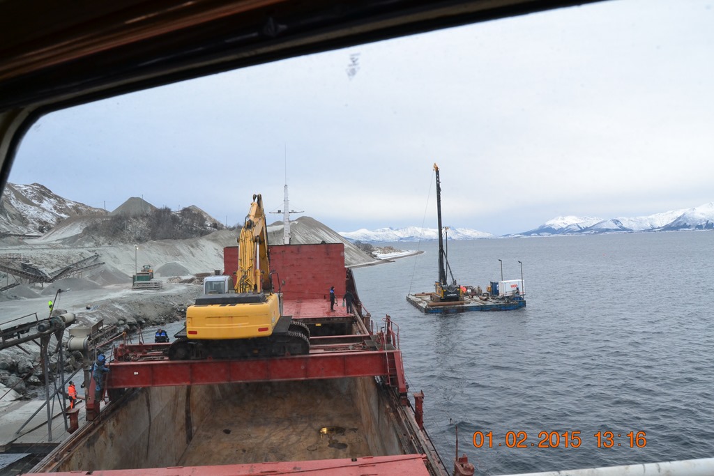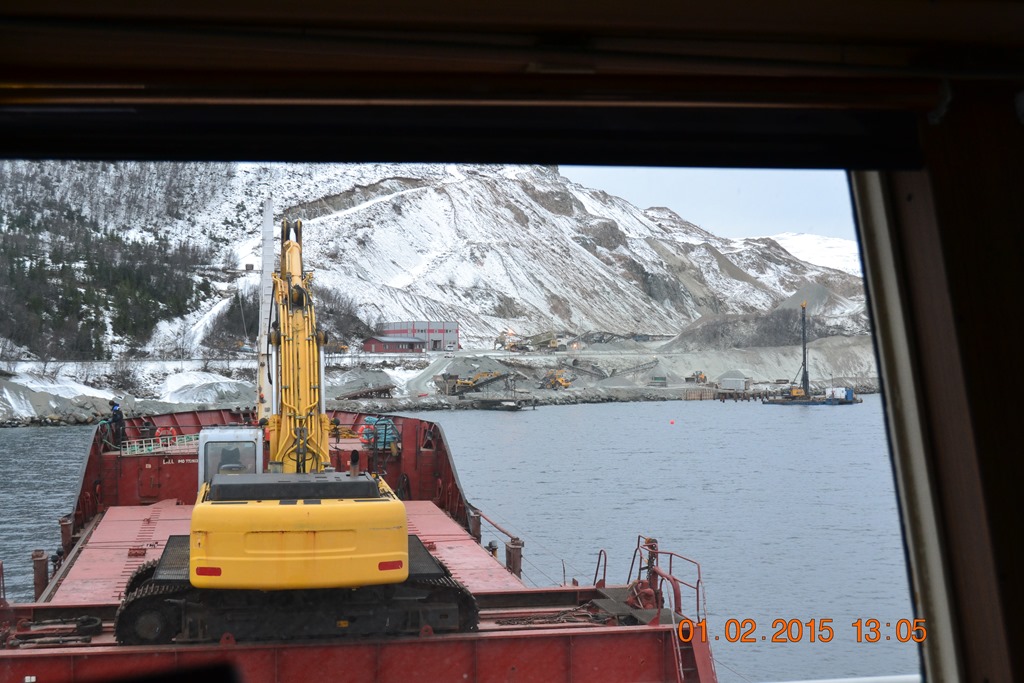 13:15 Förtöjda på den provisoriska kajen på Blokken för att lasta.![]()