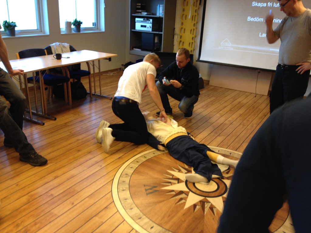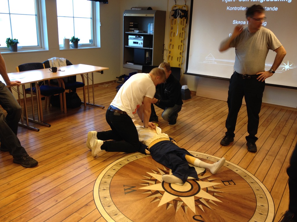 3:e dagen på IMO 80 kursen. Övade olika sjukdomsscenario och använde hjärtstartare och allt annat som vi har ombord.