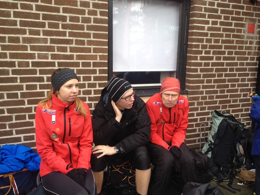 Helena, Anton och Peter väntar på start.![]()