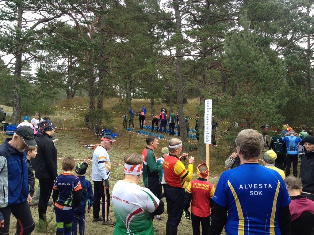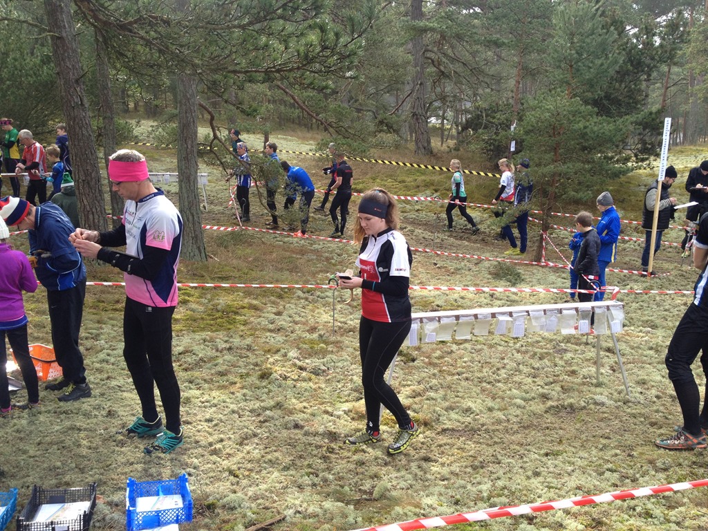 Efter en ordentlig hotellfrukost så åkte vi ner till Furuboda för att springa dagens medeldistans. Jag skulle springa H45, Oscar H14 och tjejerna Öppen 7. Det var lite småkallt men ändå fint väder.