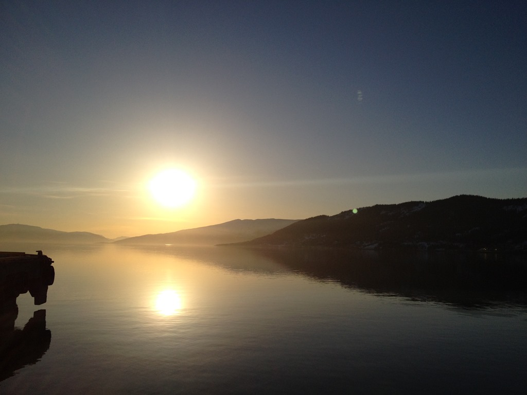 18:00 Vaknar och går upp för att se hur det går med lossningen. Är en stund kvar så jag tar en kopp kaffe och ser på solnedgången.