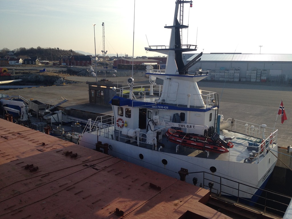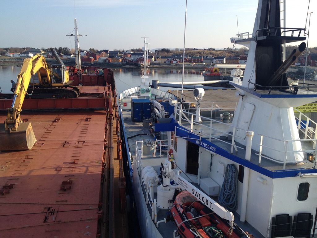 15:20 Förtöjda utanför Scan Trans på Uthaug för att ordna en ny hydraulslang till grävmaskinen.![]()