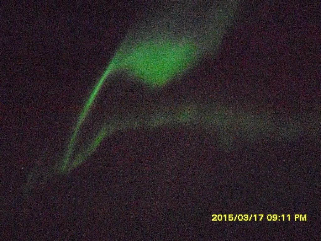 Upptäcker sedan att det är ett helt fantastiskt norrsken ikväll. Tänk att man lyckas ta bilder med en liten digitalkamera utan några större inställningsmöjligheter. Blir ju lite gryning men man får ändå se på ett ungefär hur det ser ut.