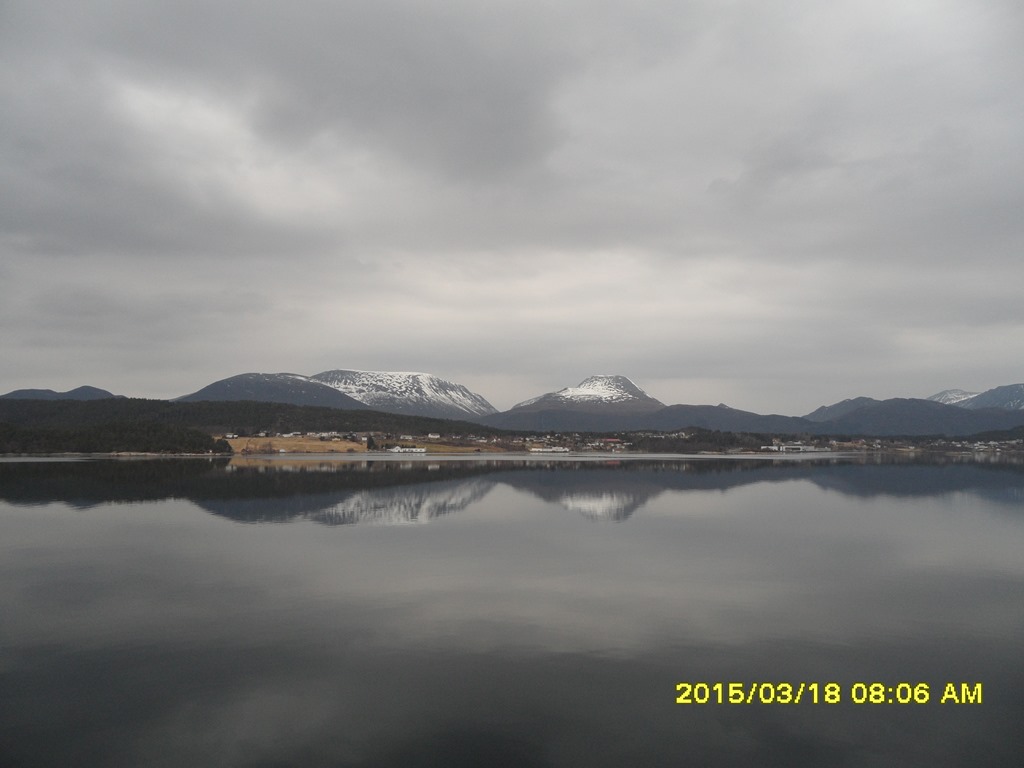 14:00 Går av vakten när vi precis rundat Stadt i riktigt stilla och fint väder.