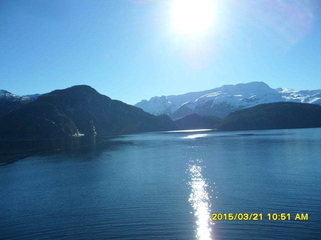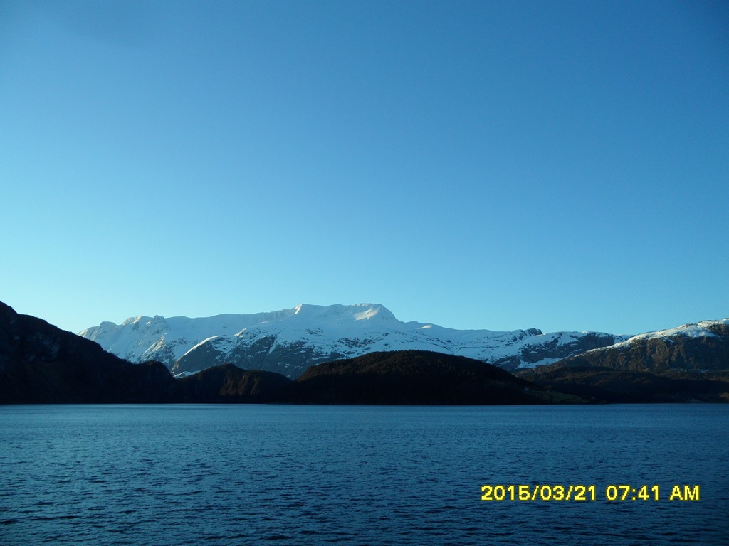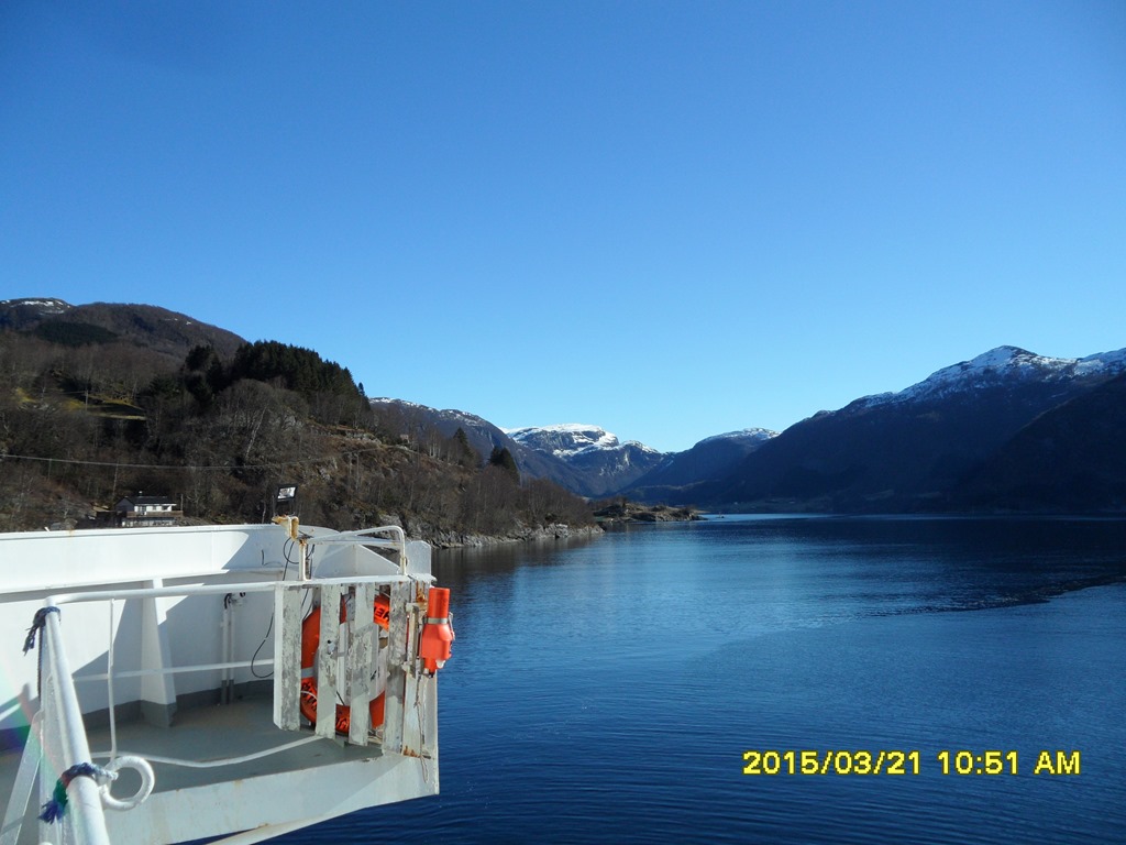 14:00 Går av vakten när vi närmar oss Krakhellesundet.