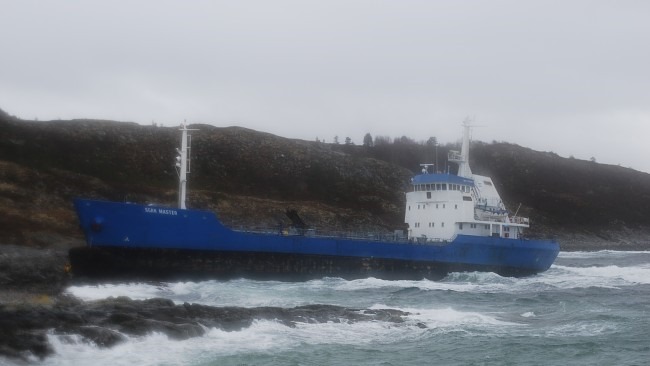 11:00 Förtöjda på Rovde i avvaktan på ledig kajplats inne i Volda. Får höra att Scan Master kört på land inatt ![]()