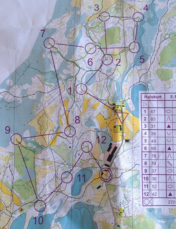 Valde att springa på sydväst ner mot släpstigen och sedan följa den på nordväst upp till höjden där 7:an låg.