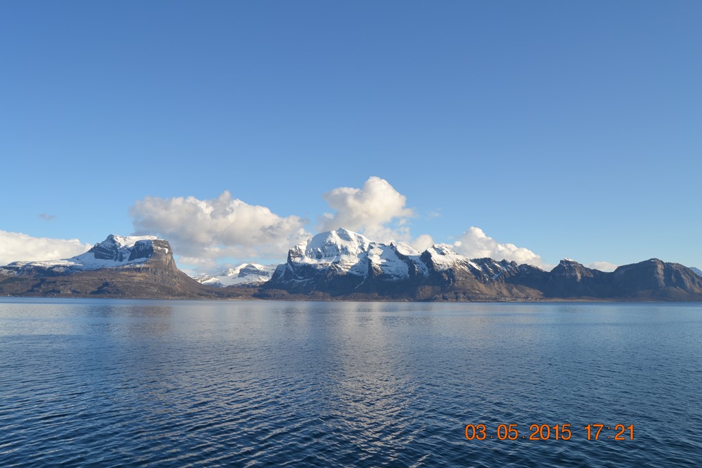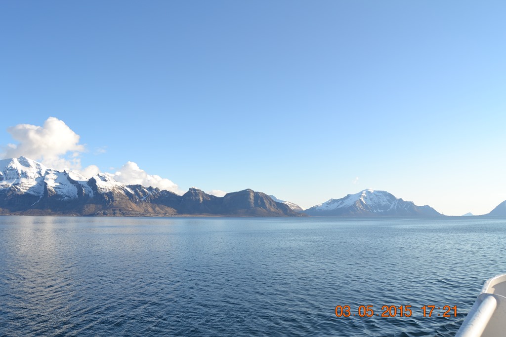 15:55 Avgår från Bodö och sätter kursen söderut mot Mo i Rana.