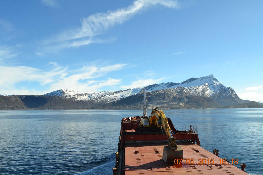13:30-14:00 Förhalar från Langstranda till Buröya för ytterligare lossning. Jag kommer upp och får sitta och vakta hela tiden eftersom vi lossar via en flotte och den ligger inte riktigt fast.. ![]()