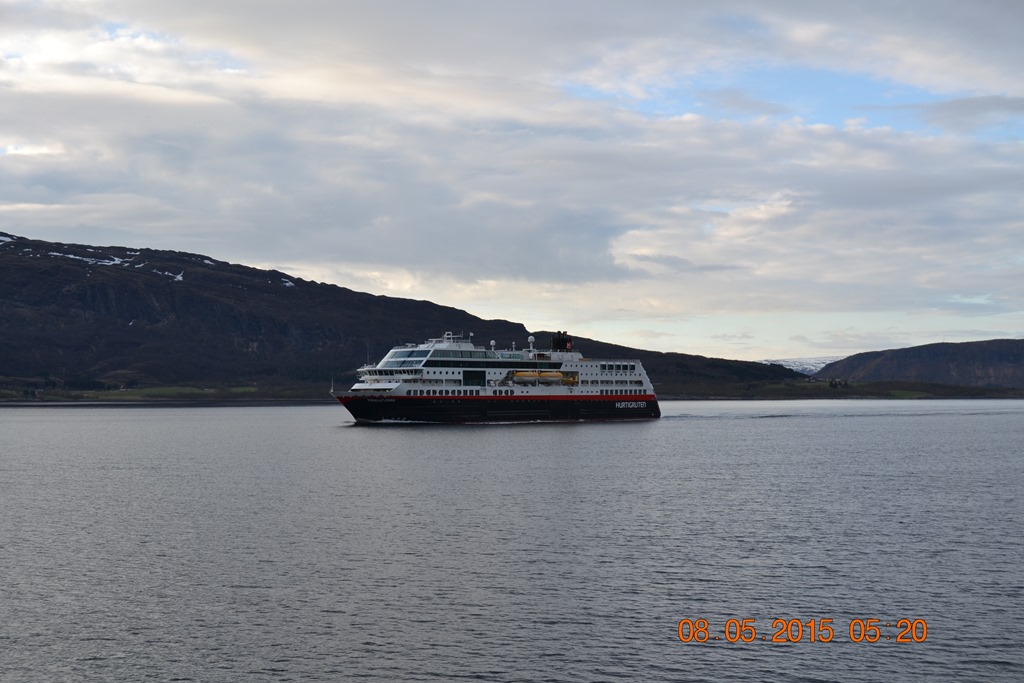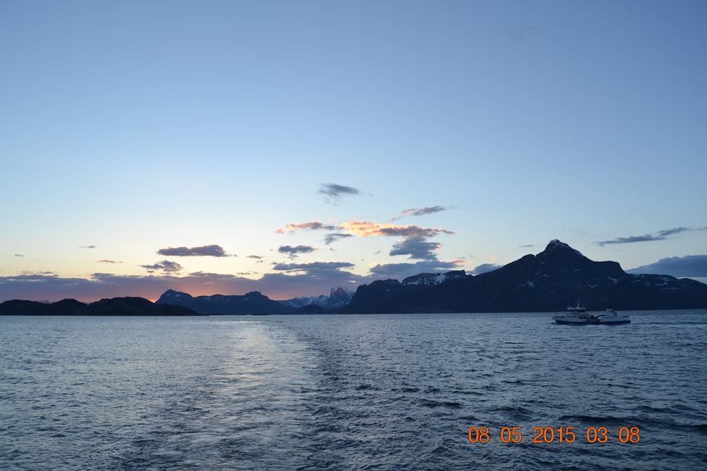 08:00 Går av vakten när vi är på väg in genom Ranafjorden med reducerad fart. Kajen är upptagen och skulle nog bli ledig vid 11 tiden.