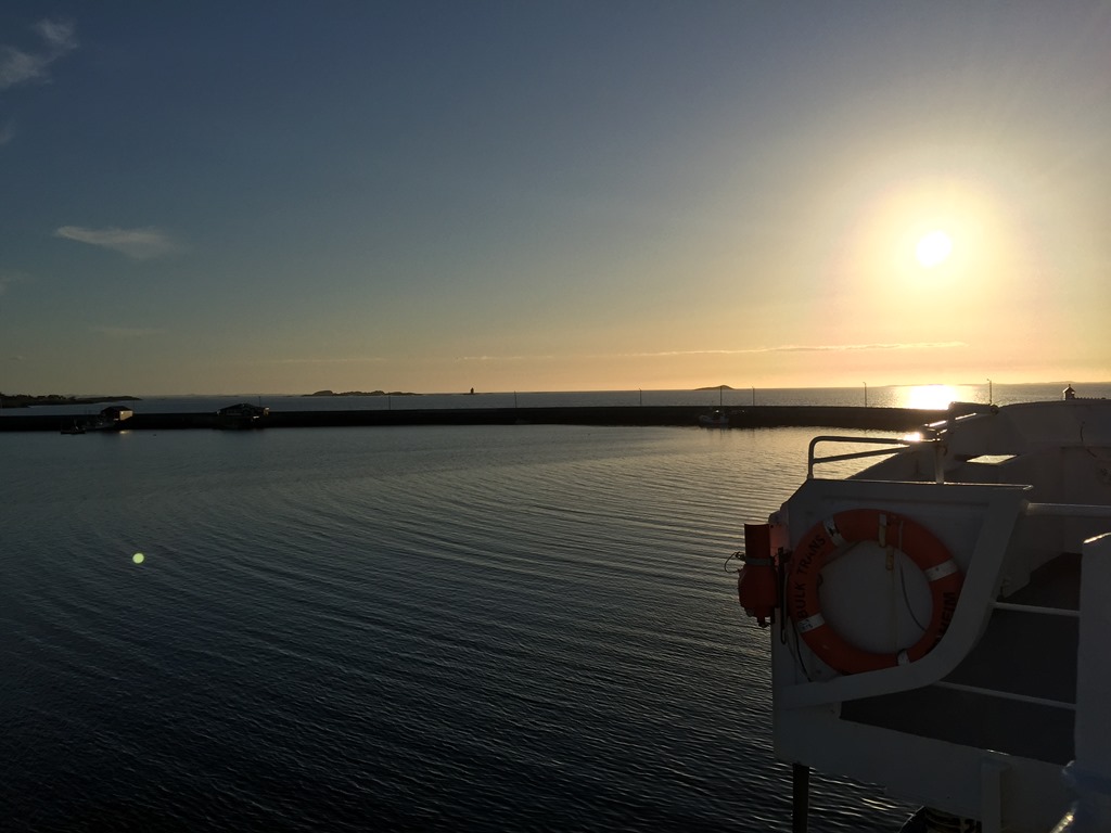 08:00 Går av vakten när vi passerat genom Dolmsundet och börjar närma oss Rörvik.