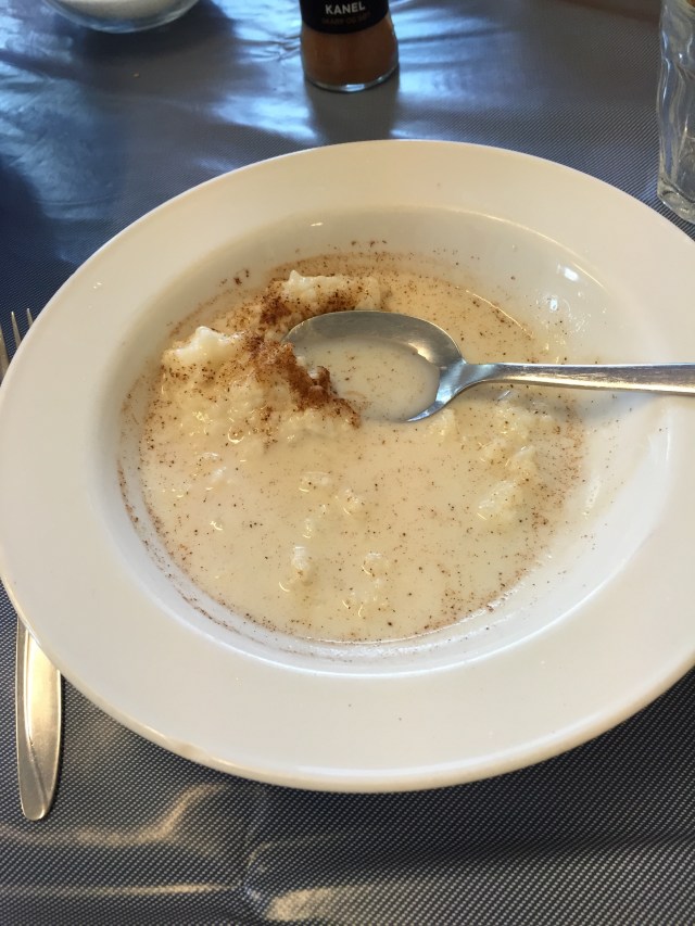 20:00 Går av vakte och ser att kocken verkligen har slagit på stort så här på lördagskvällen. Risgrynsgröt med kanel och socker. 😂