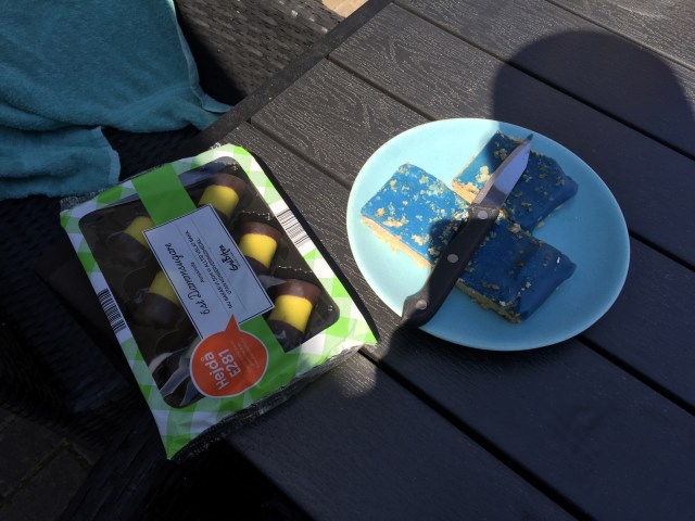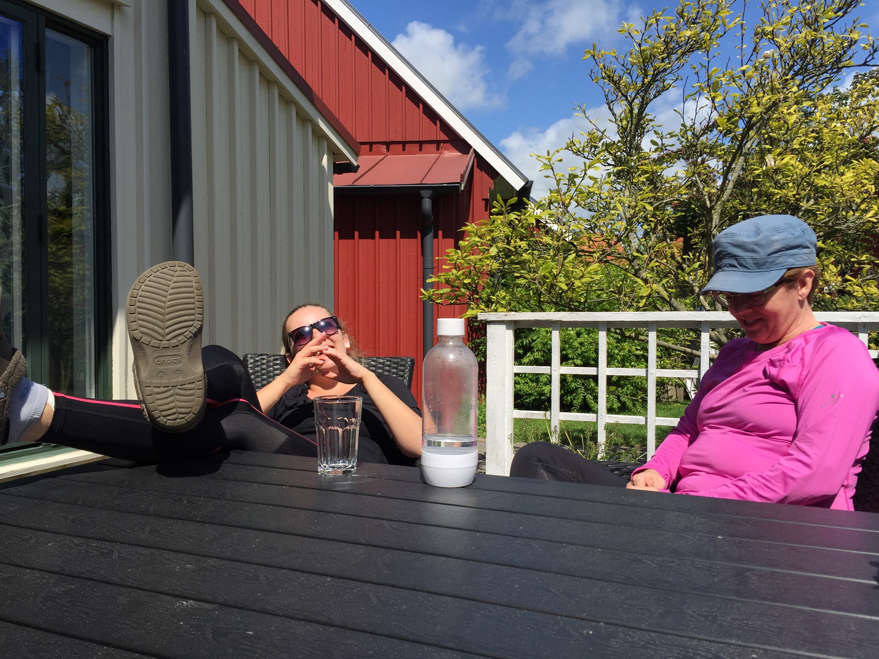 Hemma igen så satte vi oss och tog lite kaffe och kaka i solskenet.