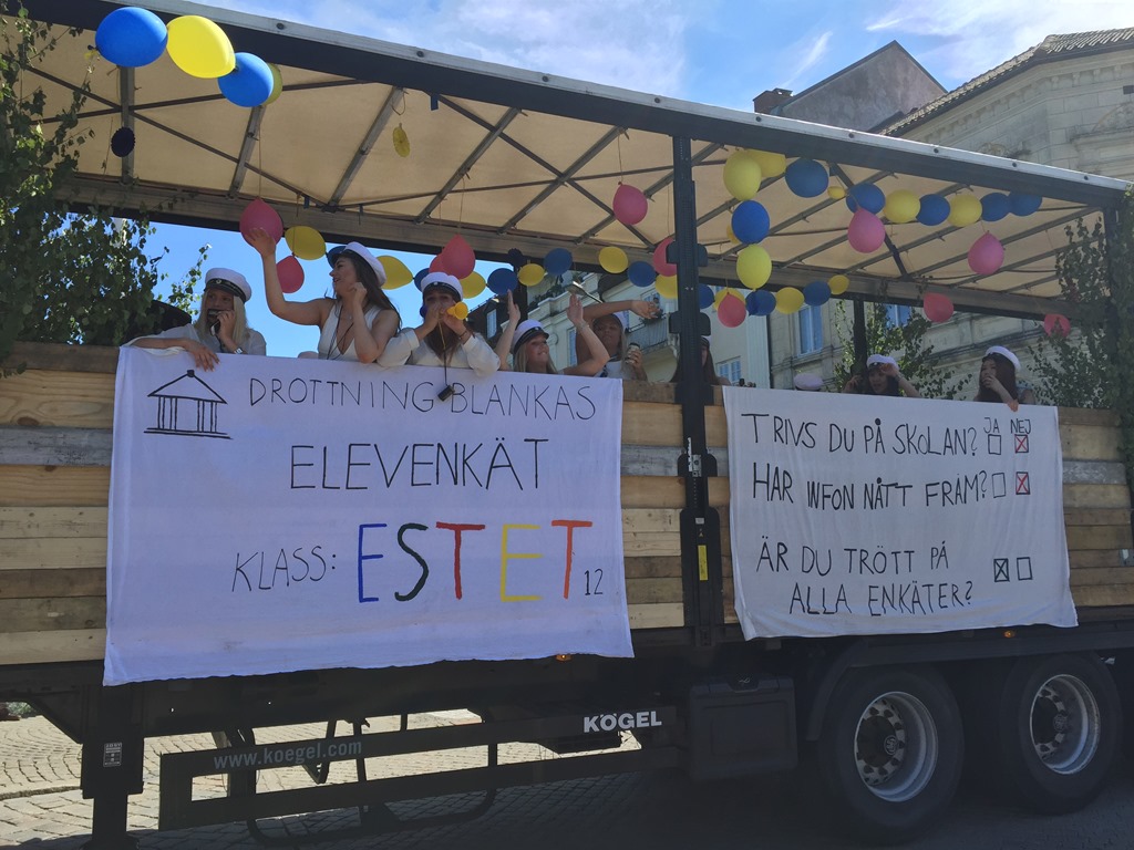 Tittade när studenterna hade sin kortege genom stan efter avslutningen.