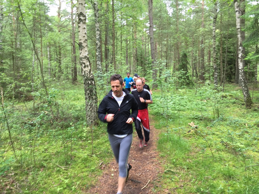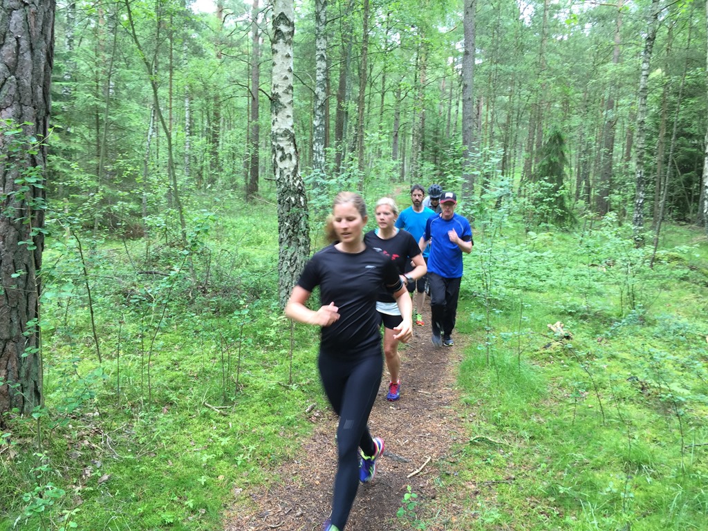 Drack kaffe och åt frukost medan familjen sov och sedan gav jag mig av bort till FOK stugan. Cyklade bort dit och det kom ganska många som ville vara med på Trailgruppens löprunda. Vi sprang en runda i slättenskogen och sedan ner mot stranden. ![]()