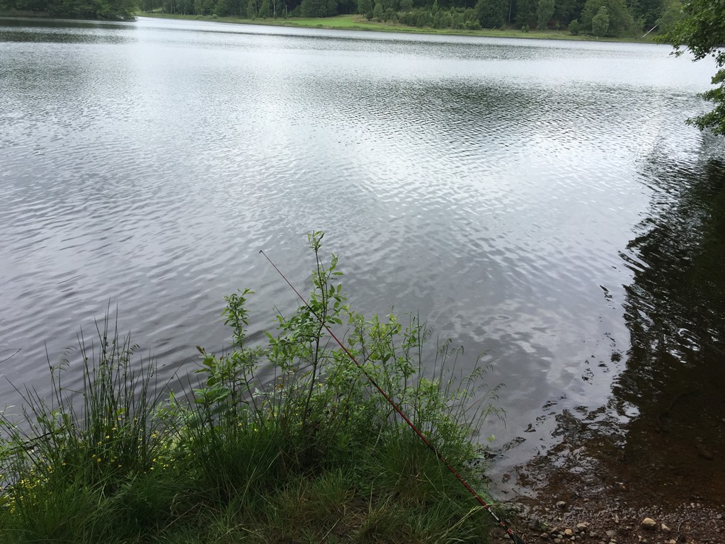 Duschade och gjorde amerikanska pannkakor till mig, Britta och Oscar. Sedan åkte vi iväg till Humsjön för att prova fiskelyckan.