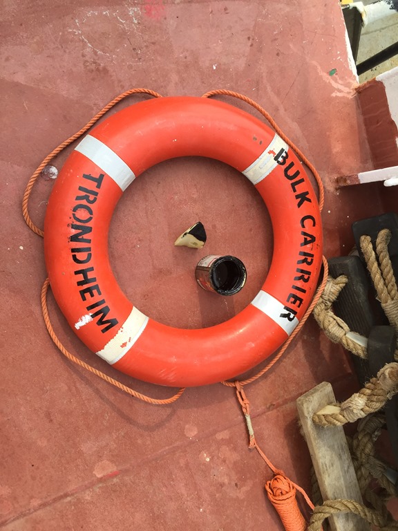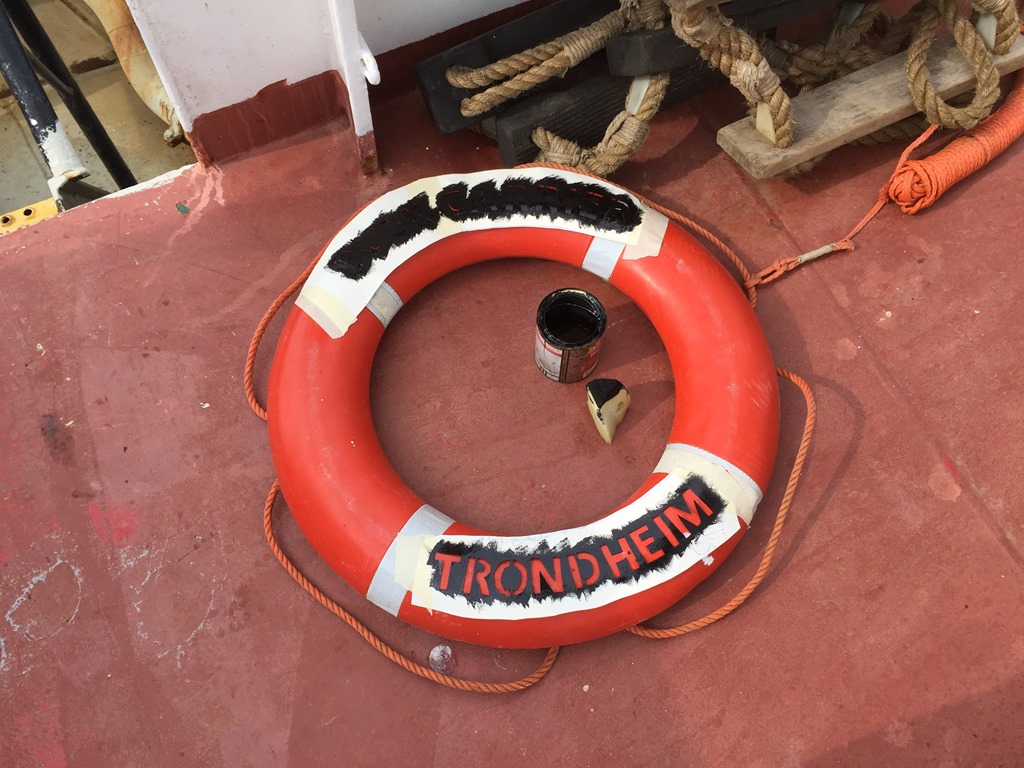 Börjar dagen med lite pappersarbete innan jag går ut för att märka om alla livbojar.