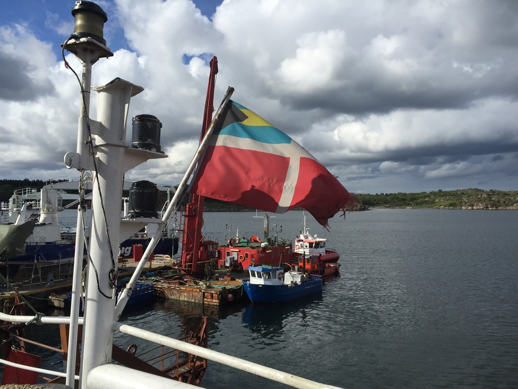 Vid 17 tiden på eftermiddagen så fick vi klartecken från Norska myndigheter att vi kunde ta ner Bahamas flagg och hissa den Norska. ![]()