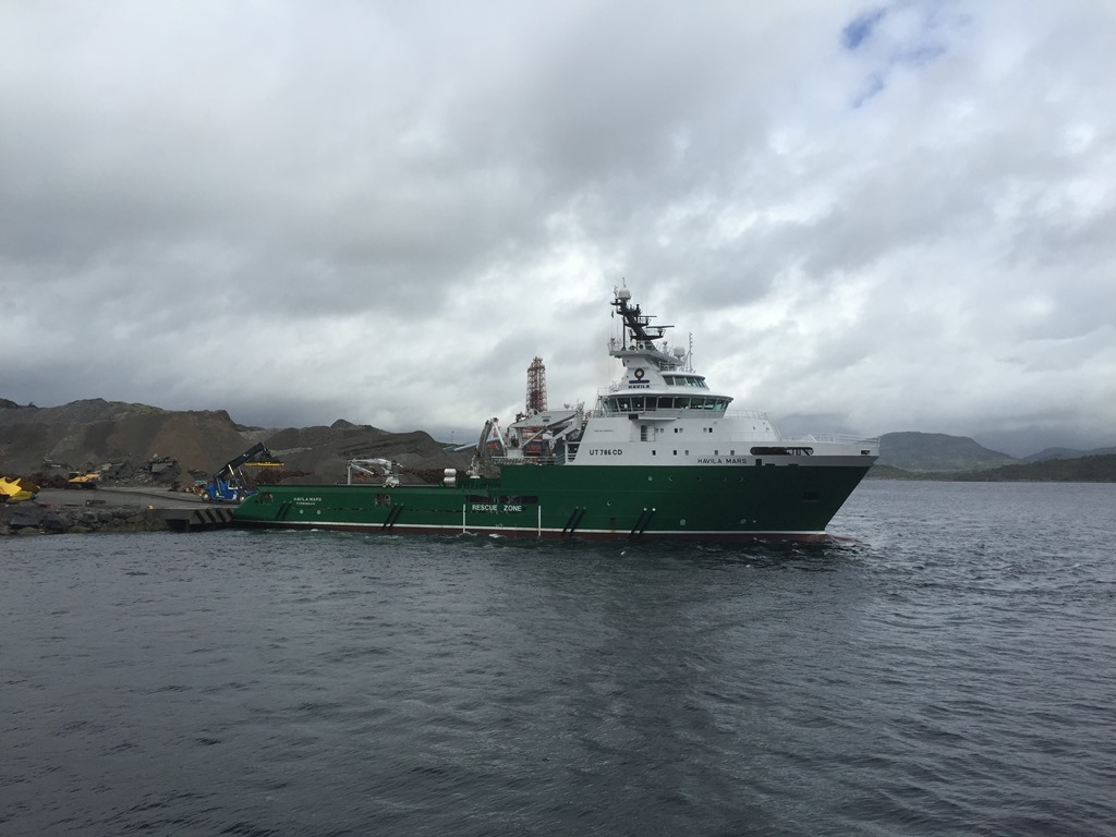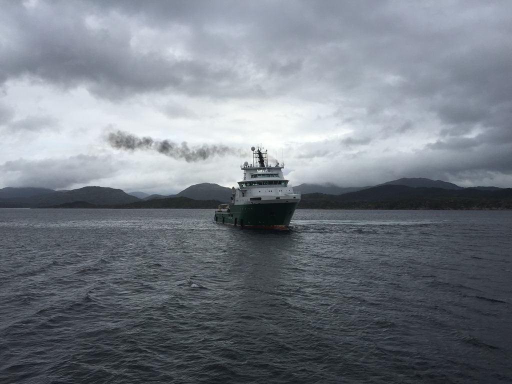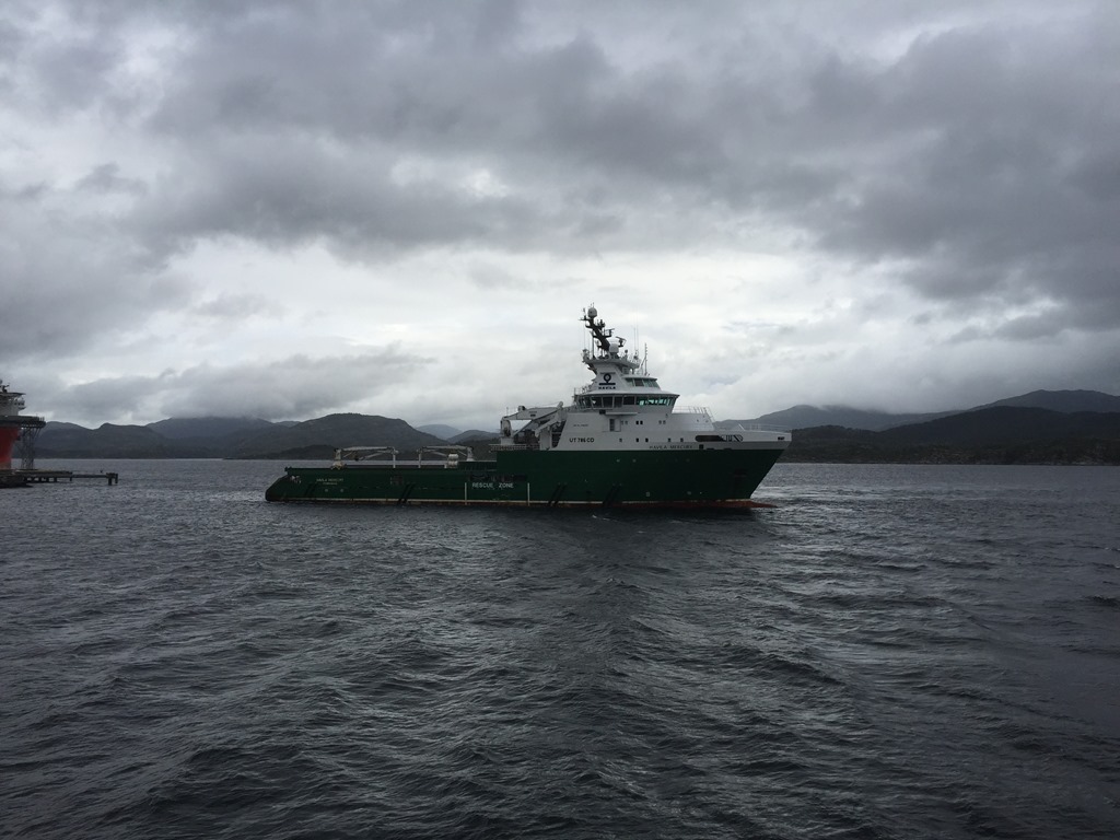 Efter frukost så kommer ankarhanteringsbåtarna in och lägger iland ankare och kätting. Skoj att se att det finns vissa som kan det här med att använda utrustningen och inte bara ligger och kör på automatik.