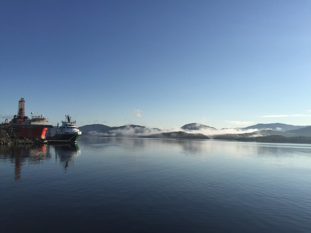 21:15 Förtöjda på Skipavika där vi skall lasta mer imorgon.