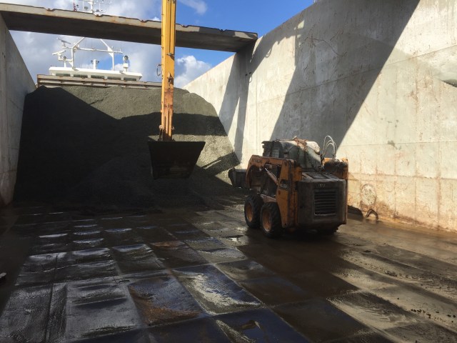 Vi får gå ner och hjälpa till lite mot slutet av lossningen.