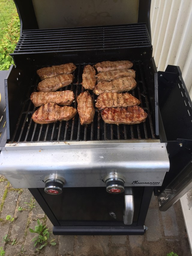 Olaug och Johnny var på Gekås och handlade inför hemresan och barnen gjorde rostade rotfrukter i ugnen. Jag satte mig på altanen med en kall öl och började grilla.