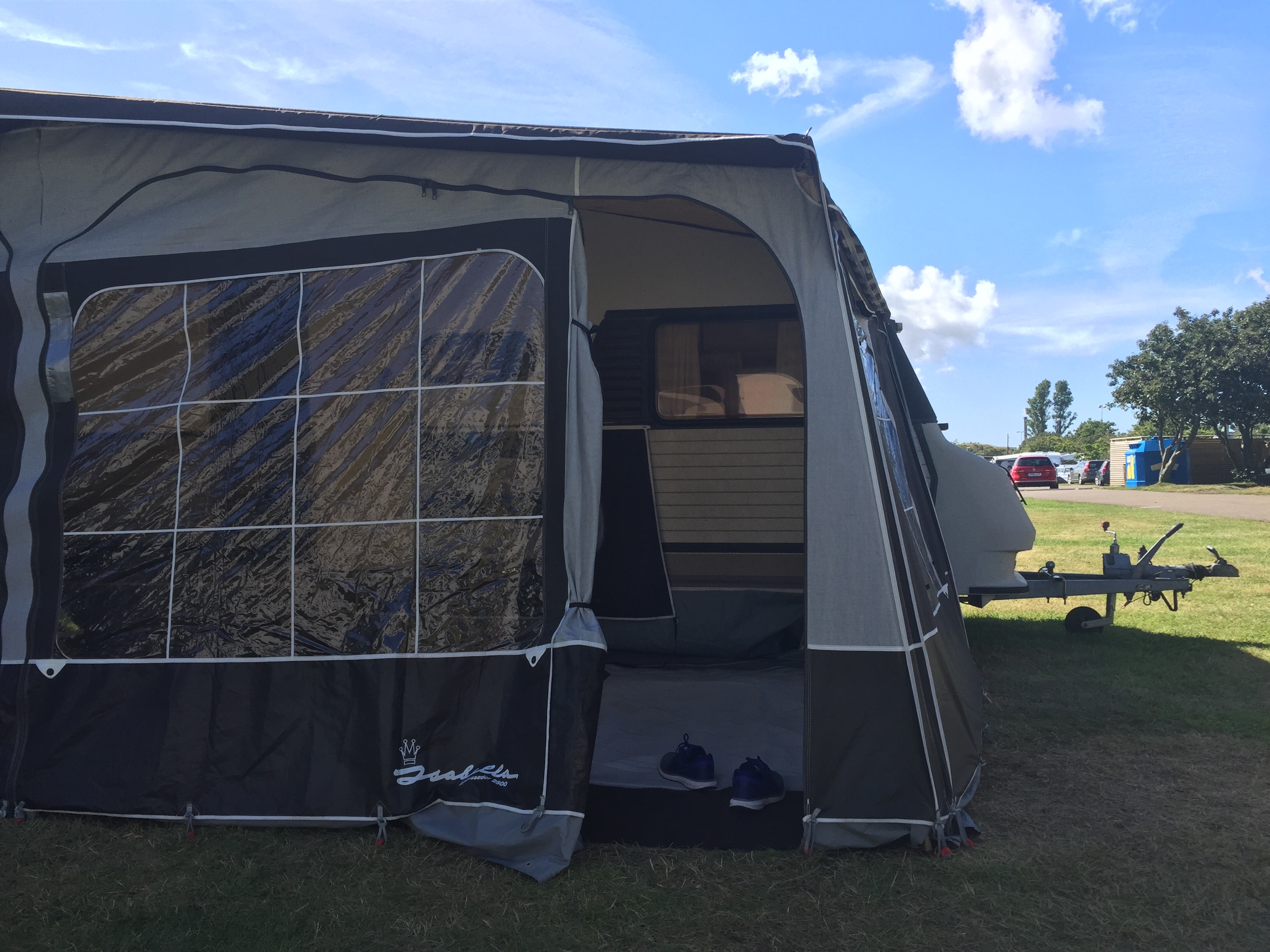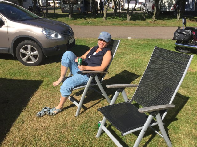Framme på Råå camping så sken solen och vi satte upp förtältet och tog varsin öl.