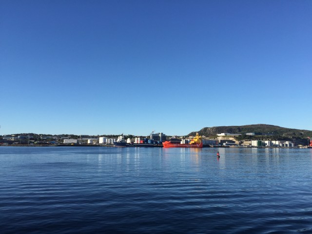 14:15 Taxi ut till Veidekke på Husöy där vi mönstrar på. De har lossat och ligger nu och lastar asfalt. Jag går och lägger mig en stund.