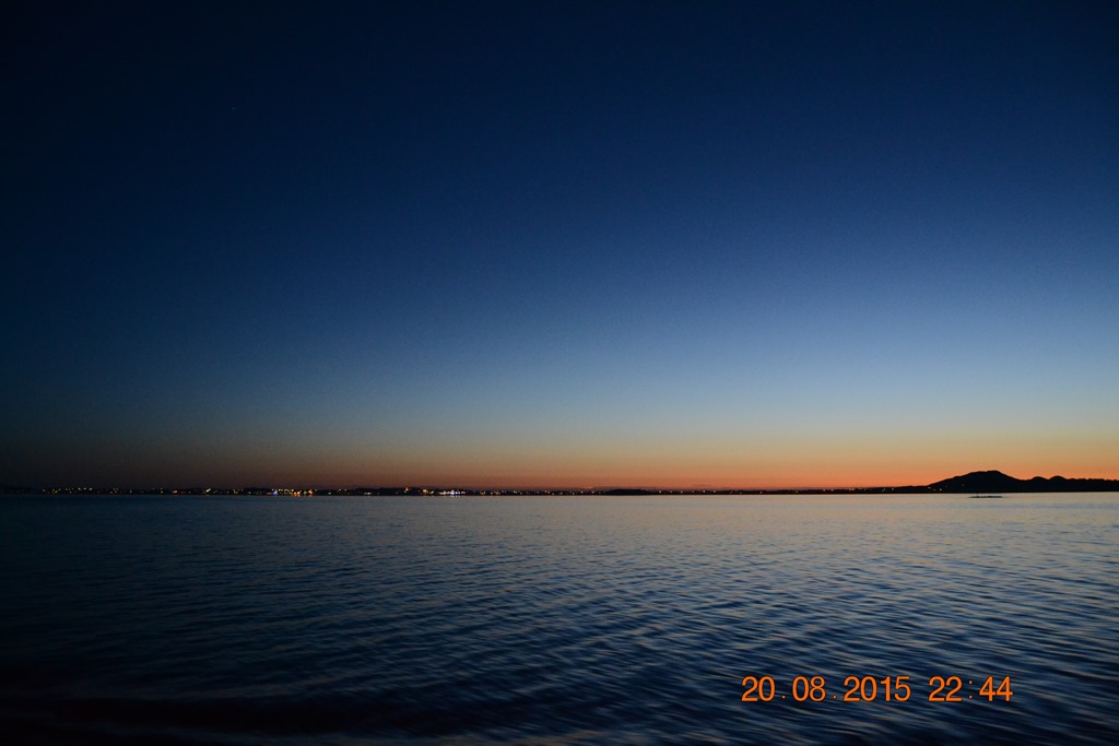 08:00 Kommer på vakt och njuter av solen och värmen ute på däck med lite kaffe.
