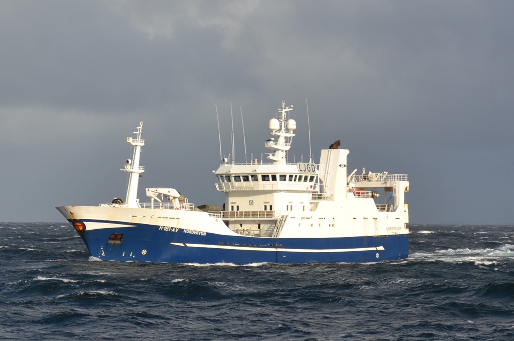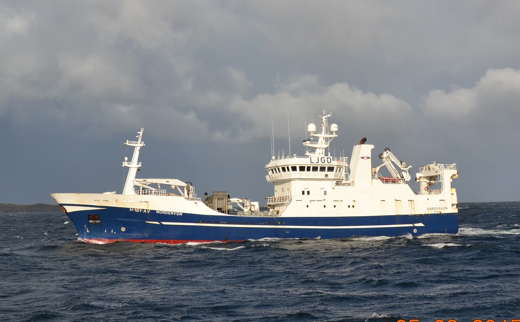 Kocken kommer upp med lite kaffe och glass när vi möter Bergen Nordic![]()