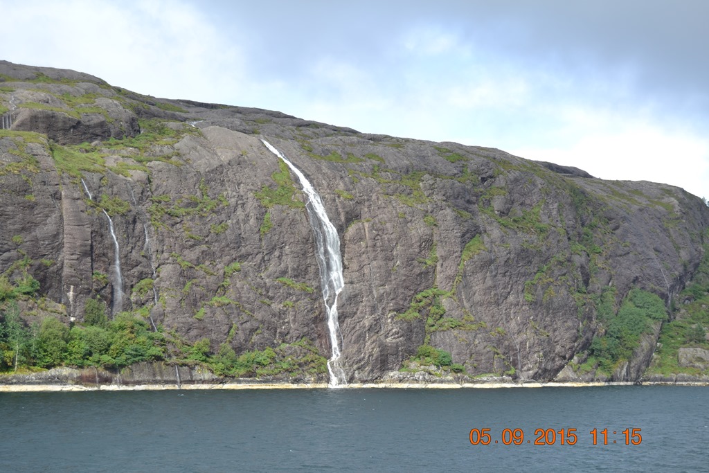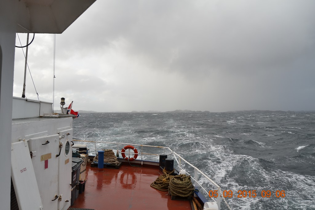 07:50 Färdig lastade och avgår. Blåsigt väder ca 16-20 m/s och regn varvat med solsken.