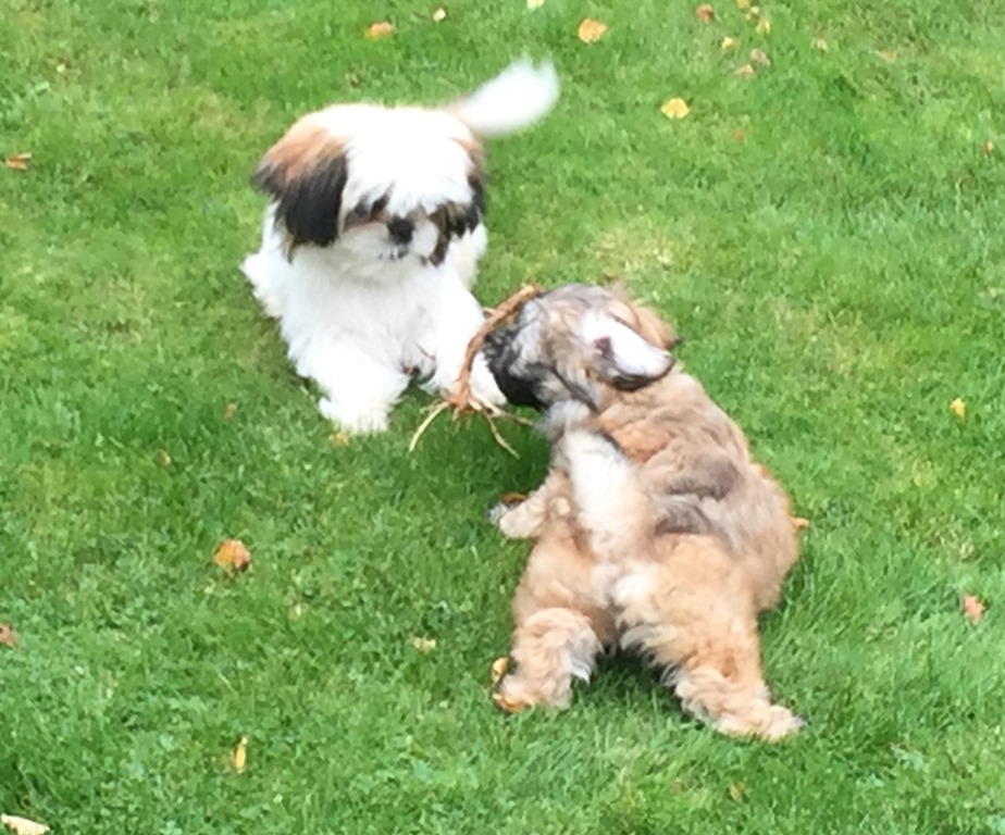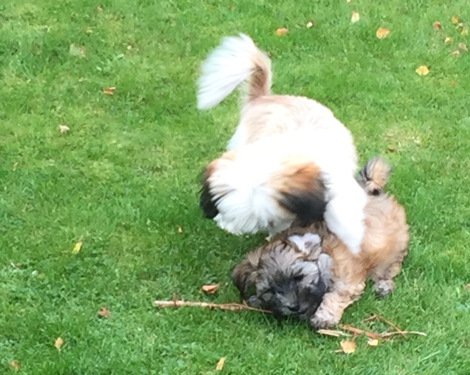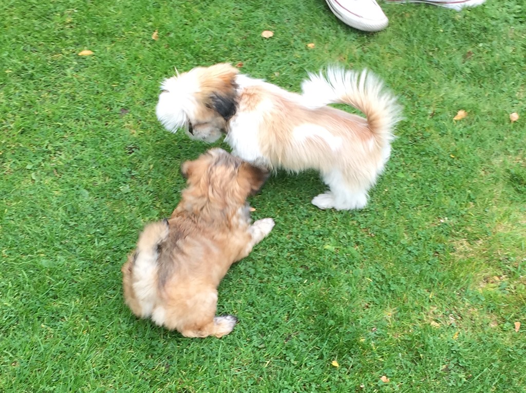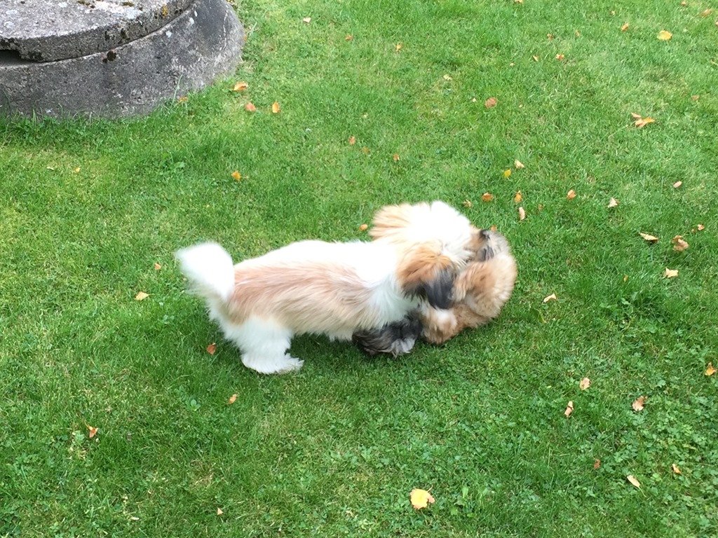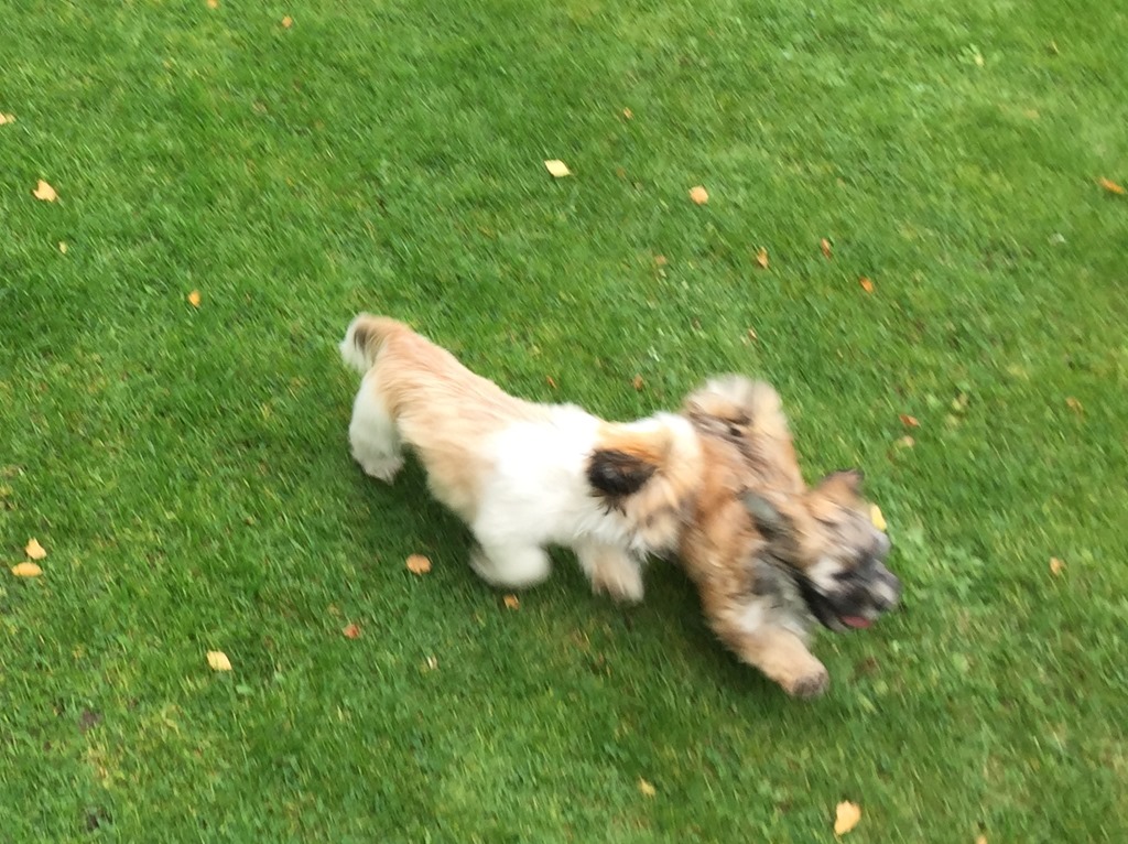 På eftermiddagen så åkte vi bort till Hagströms för att Chili skulle få träffa en lekkamrat. Doris och Chili sprang omkring ute i trädgården och lekte med varandra och verkade ha det ganska kul.![]()