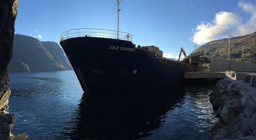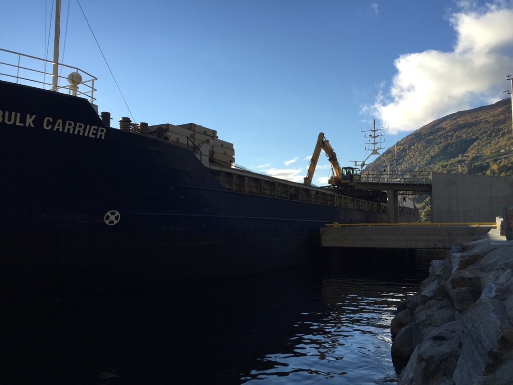 15:30 Förtöjda i Valldal för lastning. Var inte så länge sedan vi var här med bil när vi hade åkt Trollstigen och var på väg mot Geiranger.![]()