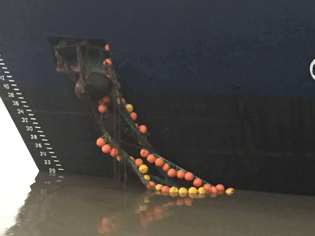 07:45 Kommer upp på bryggan efter frukosten och börjar ringa runt till olika personer för att höra hur vi skall gör med trålen på ankaret.![]()